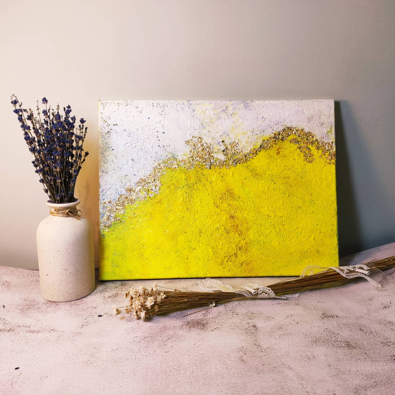 2021春天想要擁有豐盛心靈,就來畫一幅有亮亮金箔點綴的唯美金箔畫增添豐盛氛圍,課程將教學畫布渲染技巧,及運用金箔裝飾畫面,高貴的金箔經過構圖的點綴,整體效果將充滿豐盛的能量喲~😍