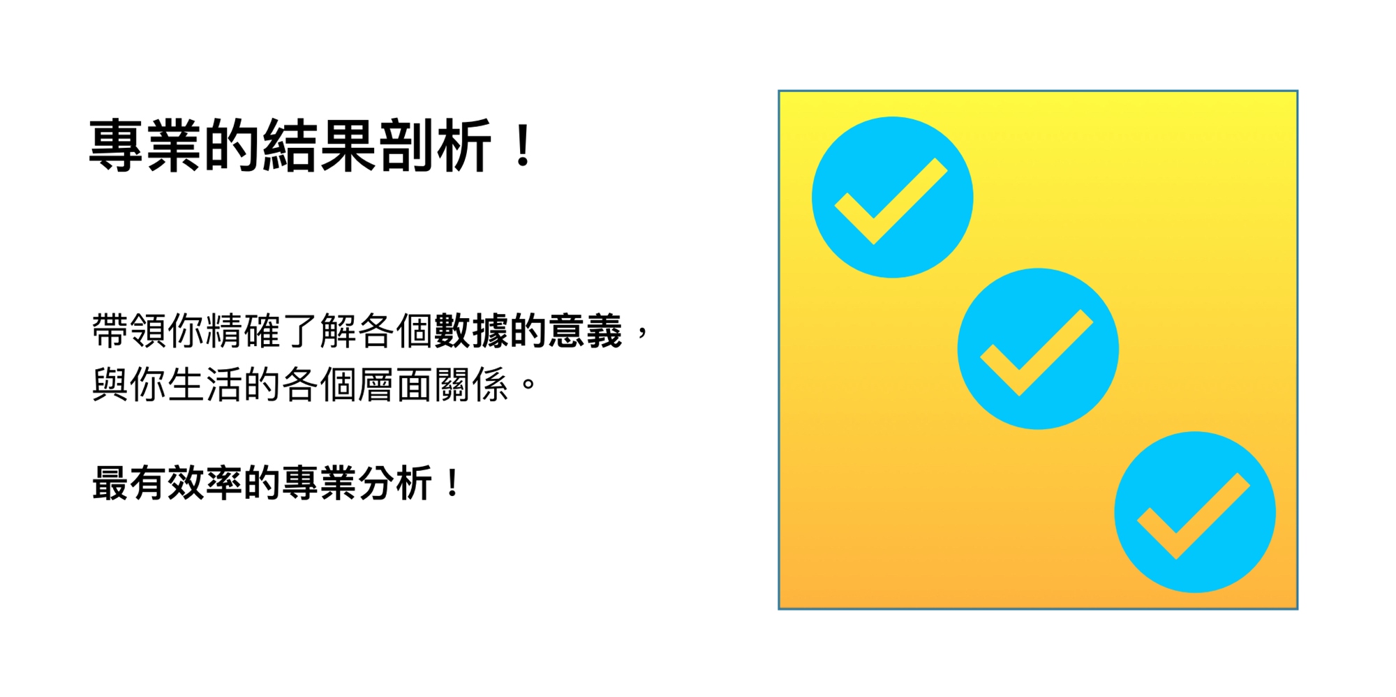 我們的專業分析員,將與你一對一進行分析,以確保你了解分析結果,