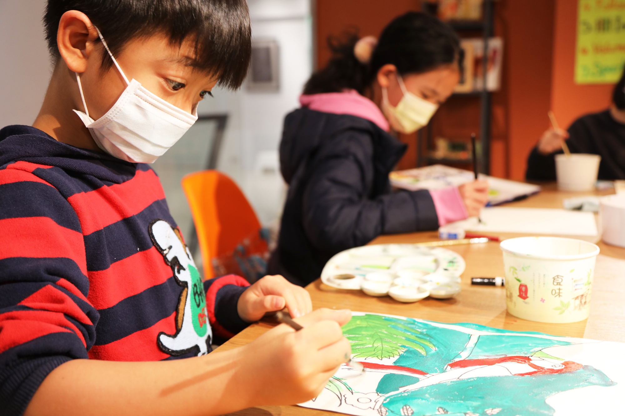 除了平面繪畫外,老師還會帶著小朋友練習抽象思考及安排課程訓練孩童們如何將審美能力應用到生活中。