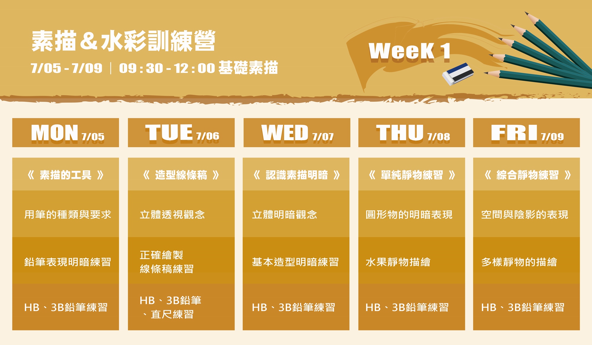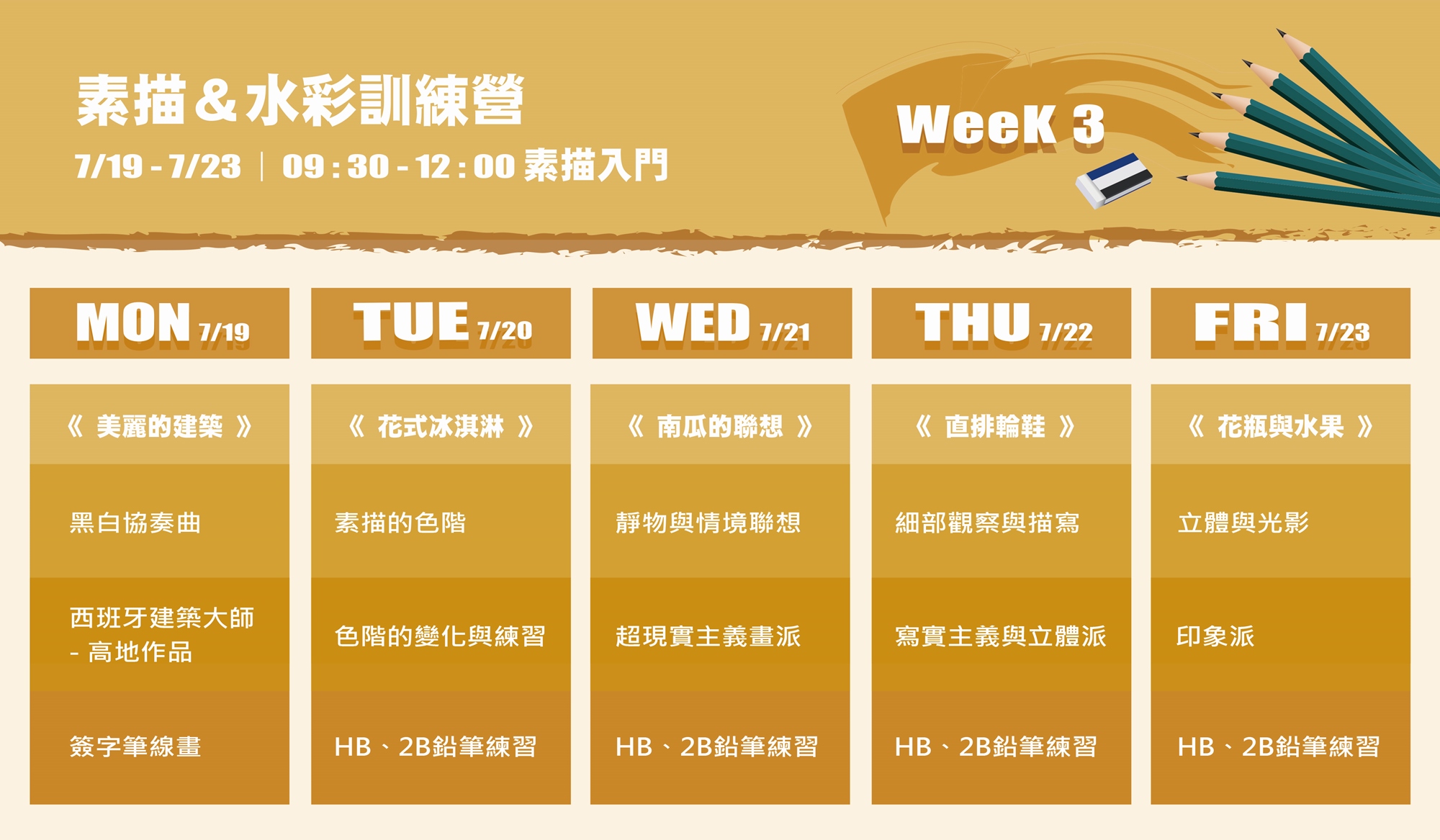 // 線上素描 & 水彩訓練營 課表 //