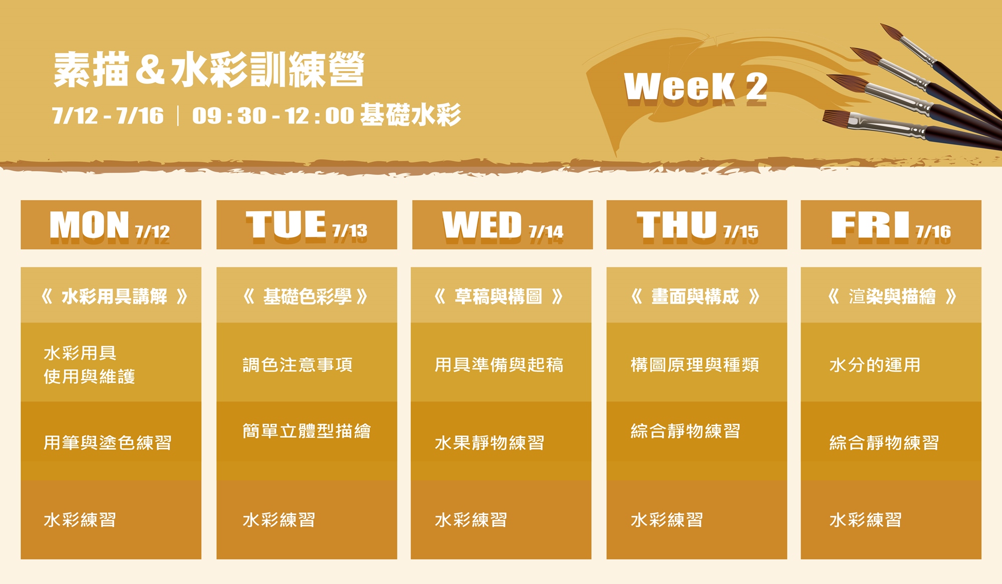 Week 2 07/12 - 07/16 上午9 : 30 - 12 : 00