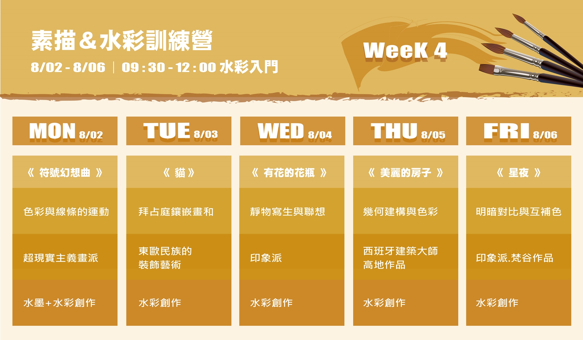 Week 4 08/02 - 08/06 上午9 : 30 - 12 : 00