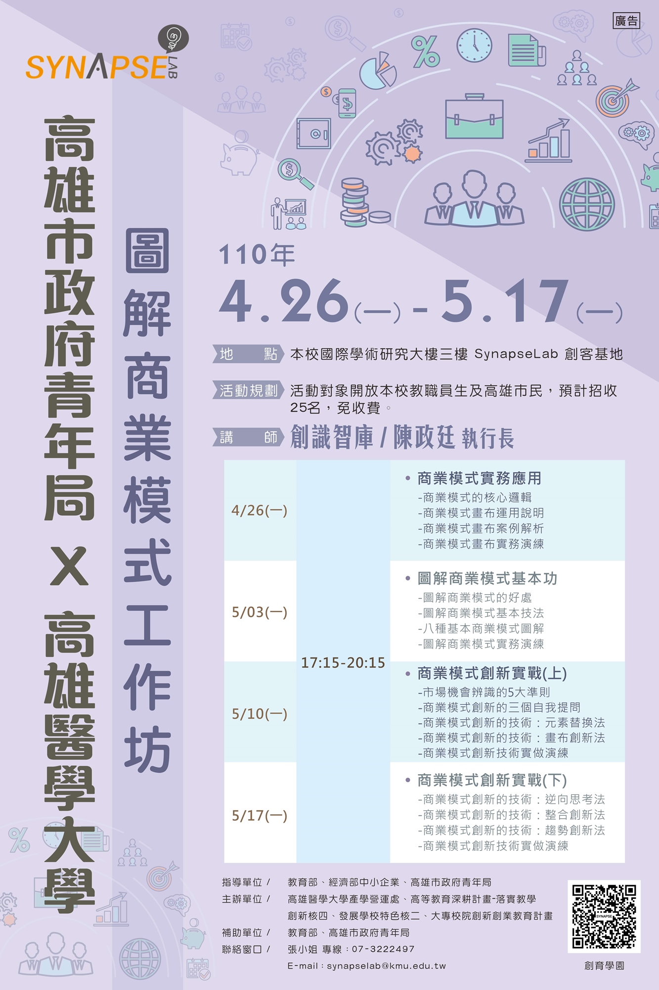【聯絡窗口】張小姐 專線:07-3222497|單位信箱:synapselab@kmu.edu.tw