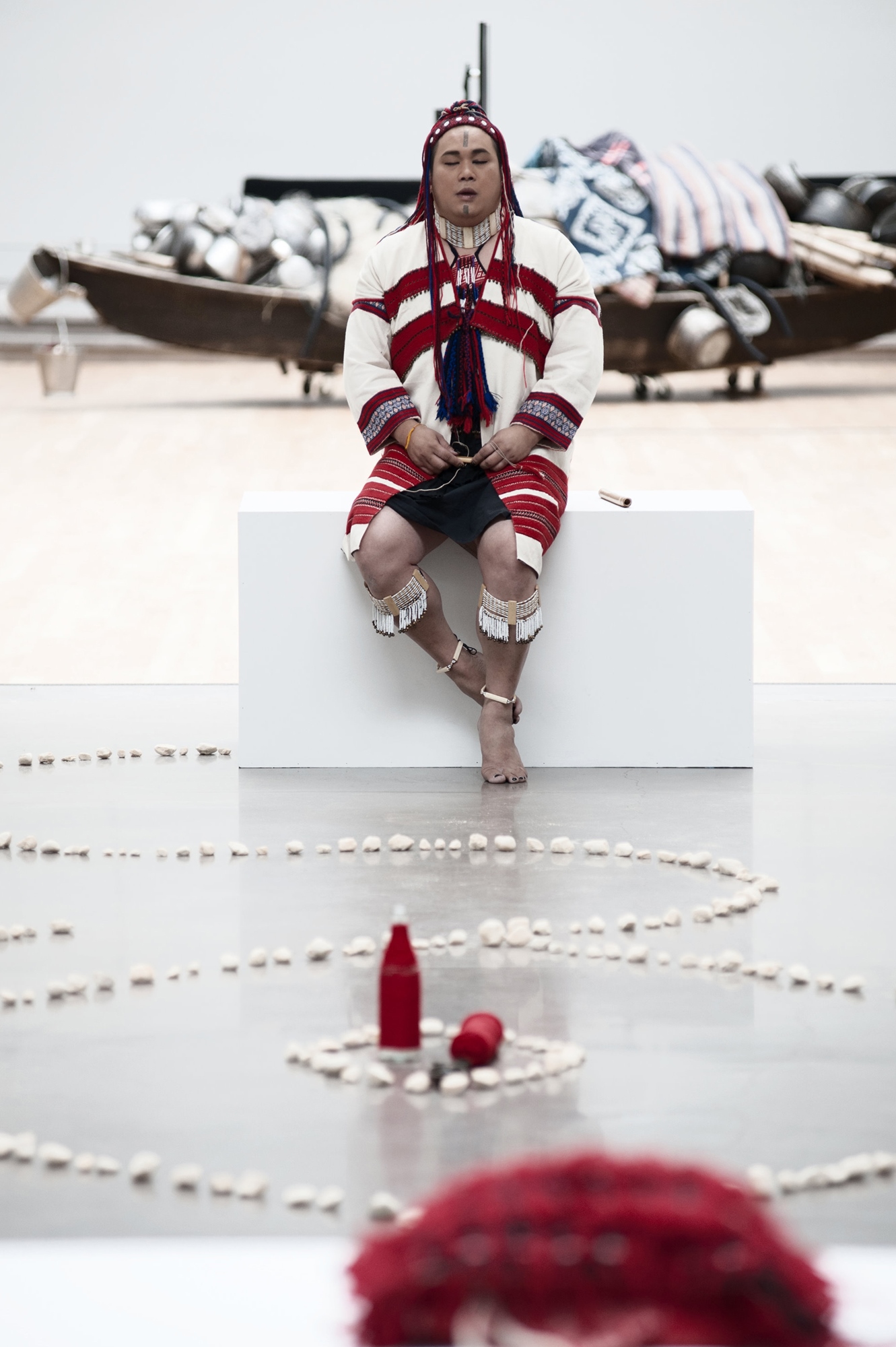 Dondon Hounwn from Tongmen tribe of Truku who is an indigenous artist with both cultural heritage and avant-garde innovation. In the community, he is the traditional inheritor of harmonica, ballads, wizards and rituals. In terms of creation, he is also a cross-border art creator of performance art, video art, and environmental theater. Won the first prize of the 2nd Pulima Art Award.