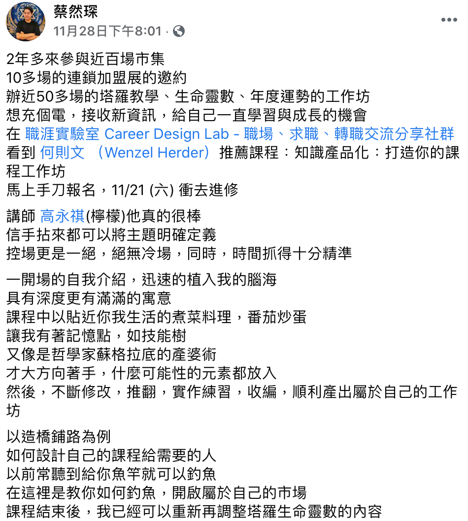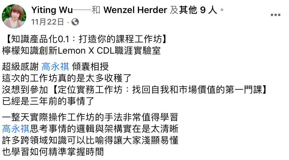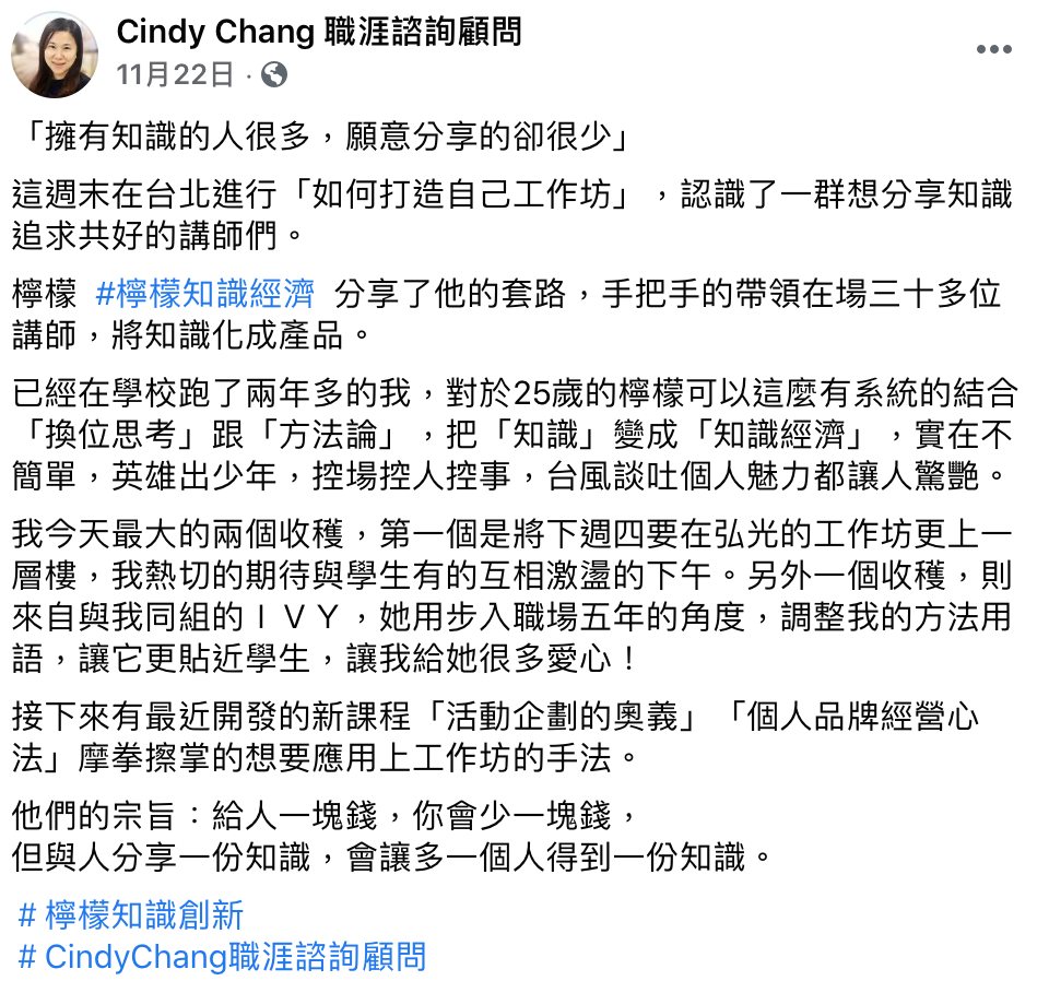 如果知識只在你的腦中,本身就是一種浪費,因為你可以拿來創造價值,幫助更多人。