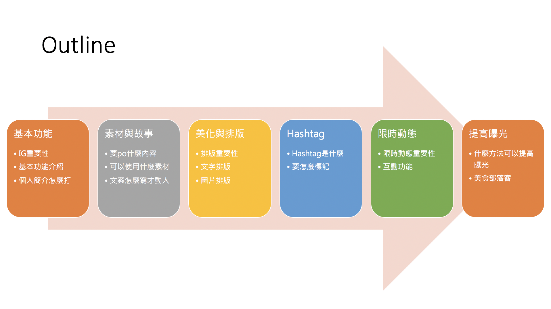 1. 由於是小班制且針對特定學員,開課前請提供簡單的個人介紹,(ex.你正在經營的Instagram),讓講者可以客製化教學,針對你現在正在經營的店家,解決你面臨的問題。
