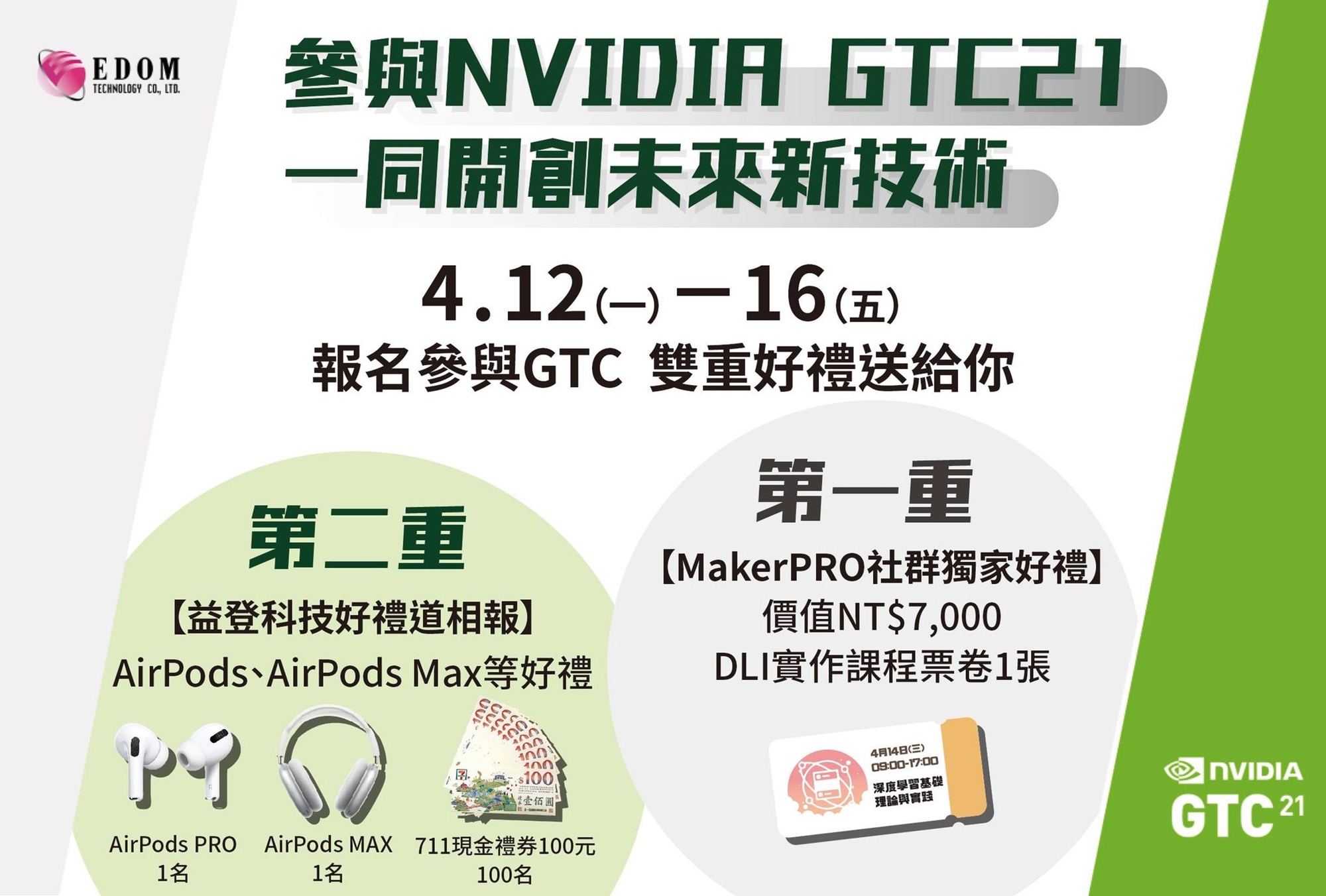 今年度參與NVIDIA GTC21演講,除了有精彩內容豐富課程外,完成以下兩步驟還有雙重機會抽大獎