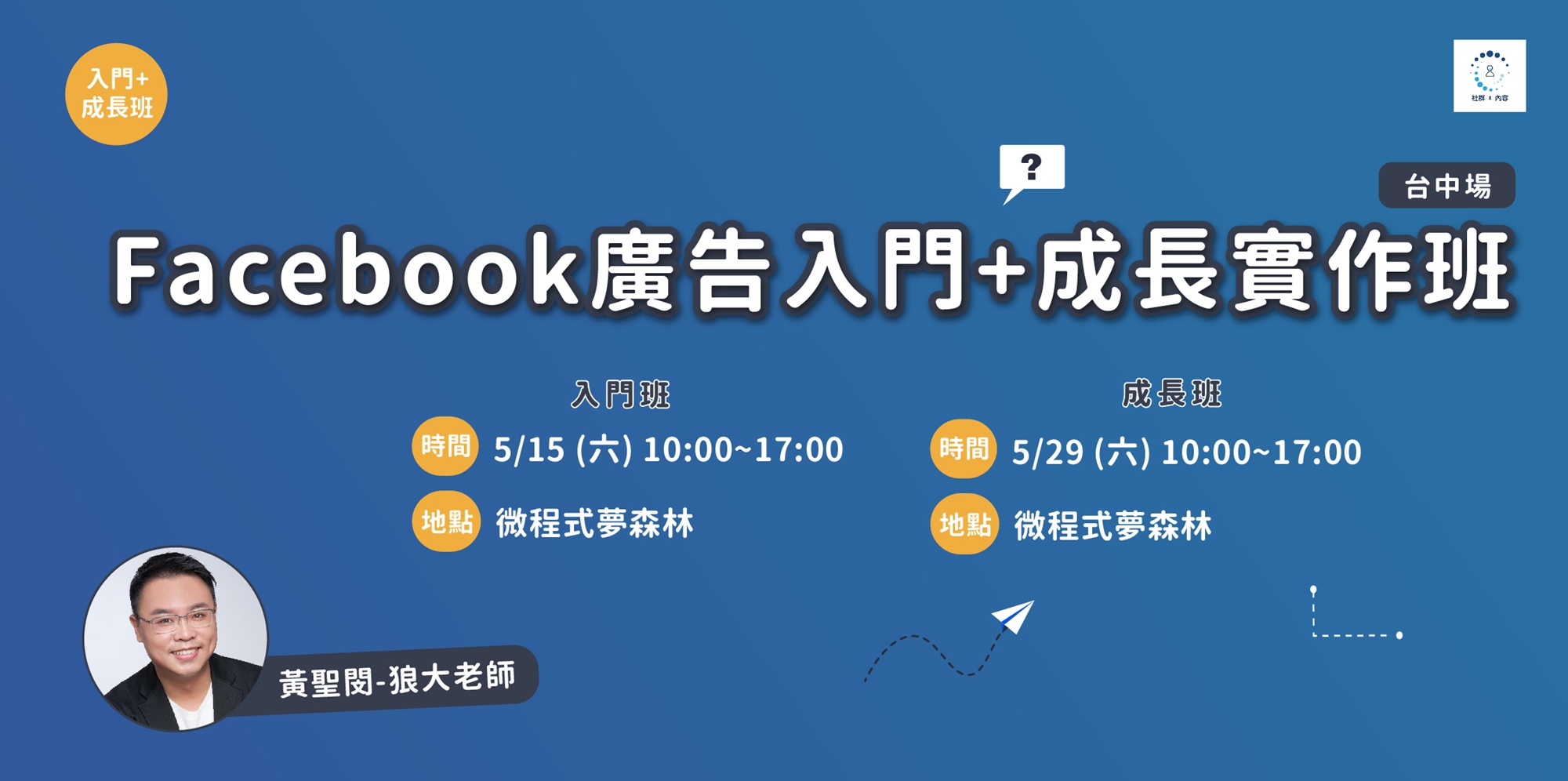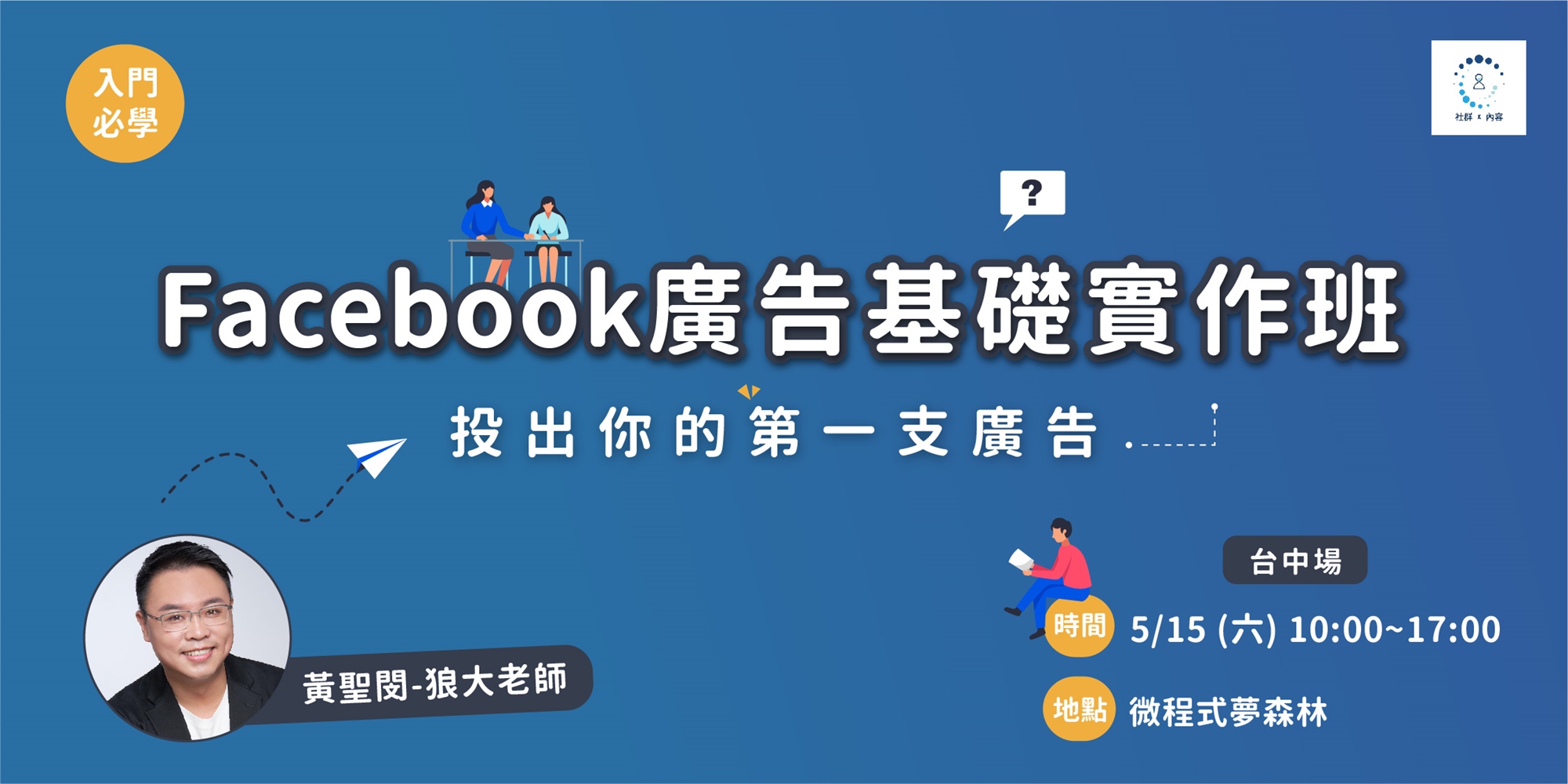報名需知:本班次為【入門班】,參與學員需經營粉專粉絲人數 1,000 人以上且近一個月有 3 篇貼文者,自備筆電講師將帶領大家實際操作。