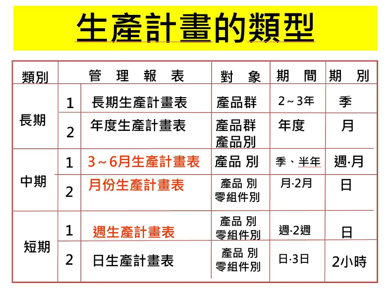 2. 生產計畫與管制的內容