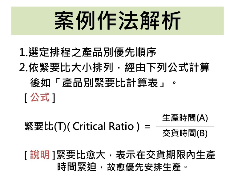 生產計畫與進度排程需要具有生產優先順序的邏輯技巧