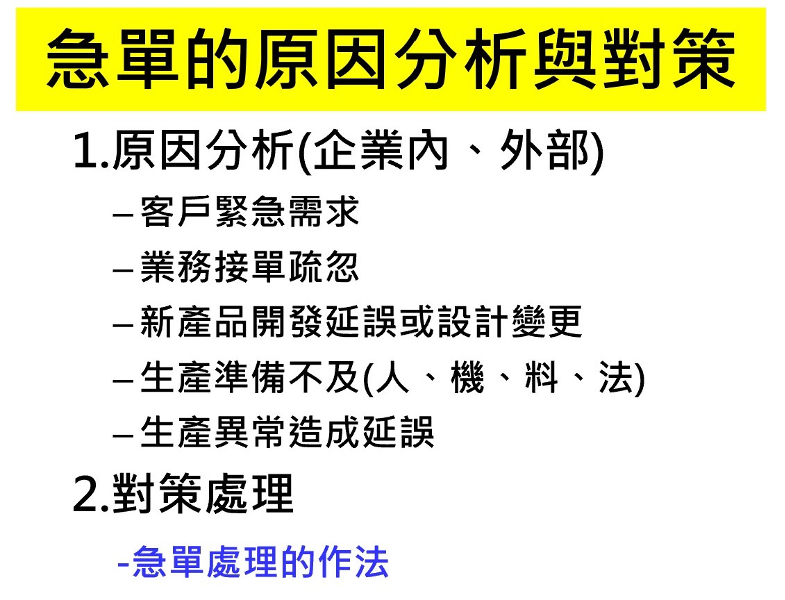 2. 急單的原因分析與對策