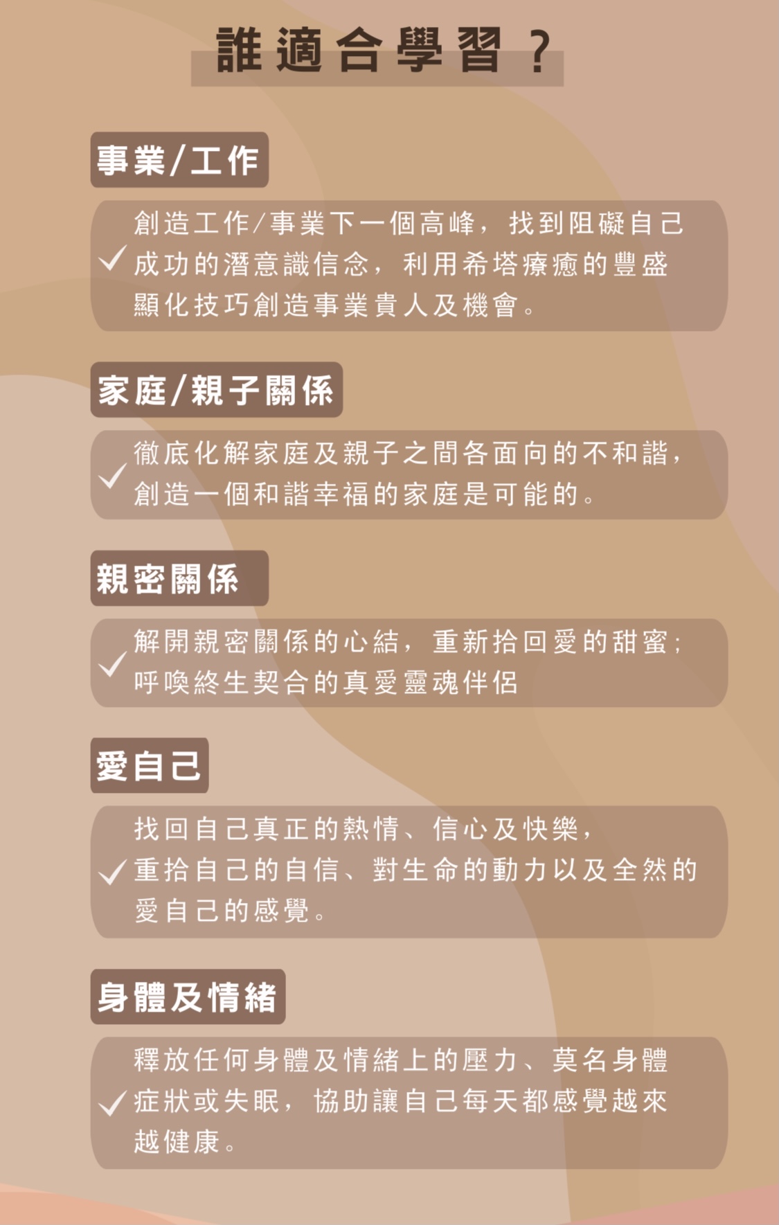 ★ 基礎、進階、挖掘每堂課程贈送<30分鐘線上 一對一希塔療癒>