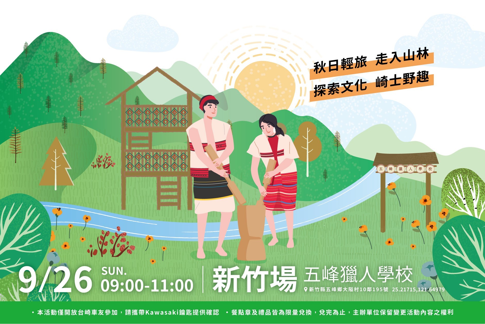 遠離塵囂、吸收芬多精,親近大自然來場初秋的療癒之旅。Kawasaki 崎車趣新竹場邀請K旅人車主們前進山林,在獵人學校中體驗原民文化的源遠與趣味,還可以享用在地特色的風味餐!歡迎與我們一起深入部落,探索不同文化的美好!