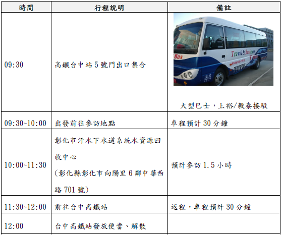 三、行程規劃如下:時間依現場狀況調整,請參訪人員協助配合。