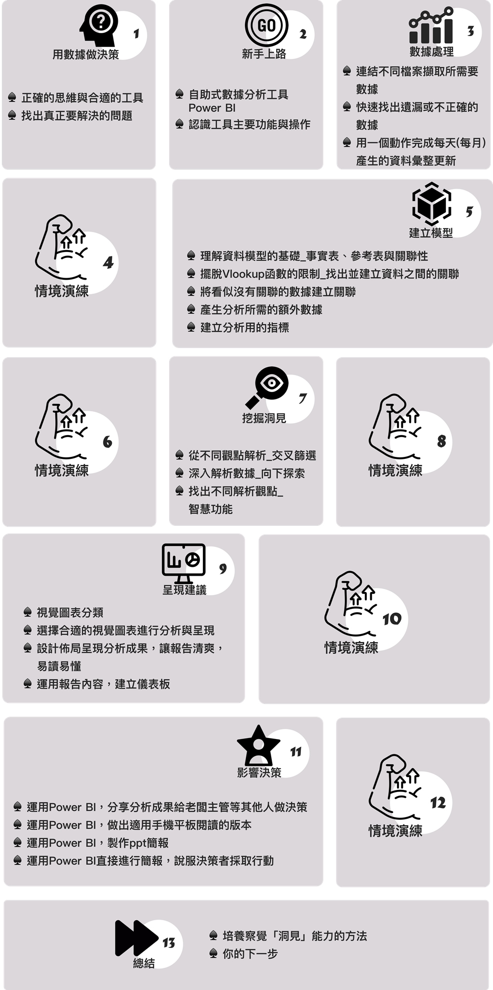 因此不論企業或是個人,學習並使用數據進行決策是必備的基礎。然而,要能從龐大的數據中分析出關鍵的資訊,做出條理分明的報告建議,說服主管客戶採取行動,你需要正確的思維與合適的工具。