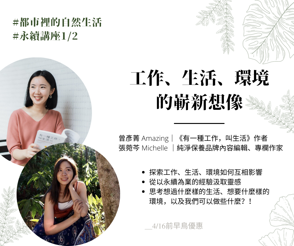若每週至少要花40小時工作,讓我們思索以實踐環保、永續為業、在工作中維持永續環境的想像與各種可能性。