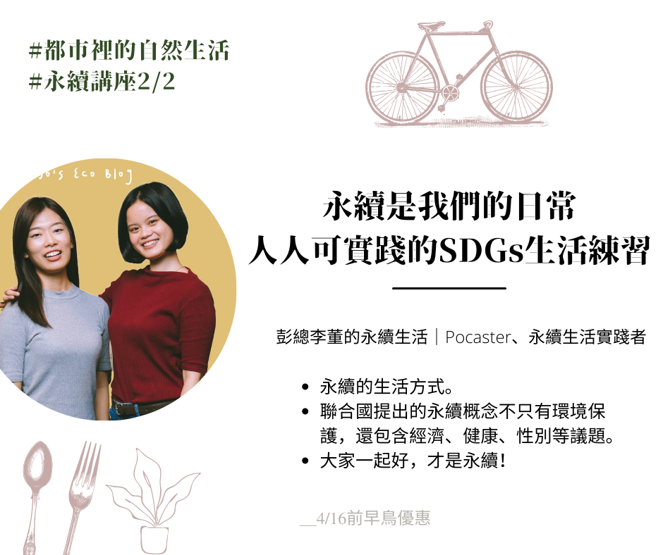15:30~16:30 講座2・永續是我們的日常 — 你我可實踐的SDGs生活練習