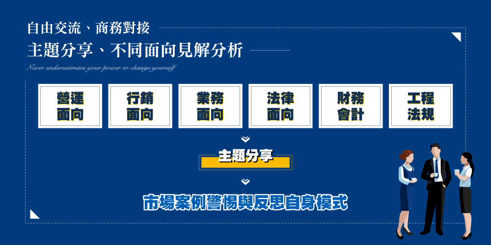 由不同面向之顧問進行見解與分析,在這邊,你可以藉由市場案例,從各面向警惕與反思自身狀況