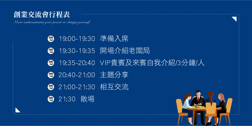 在老闆局餐敘交流會,不止是自由交流,洽談合作模式,更於每次提供不同主題分享