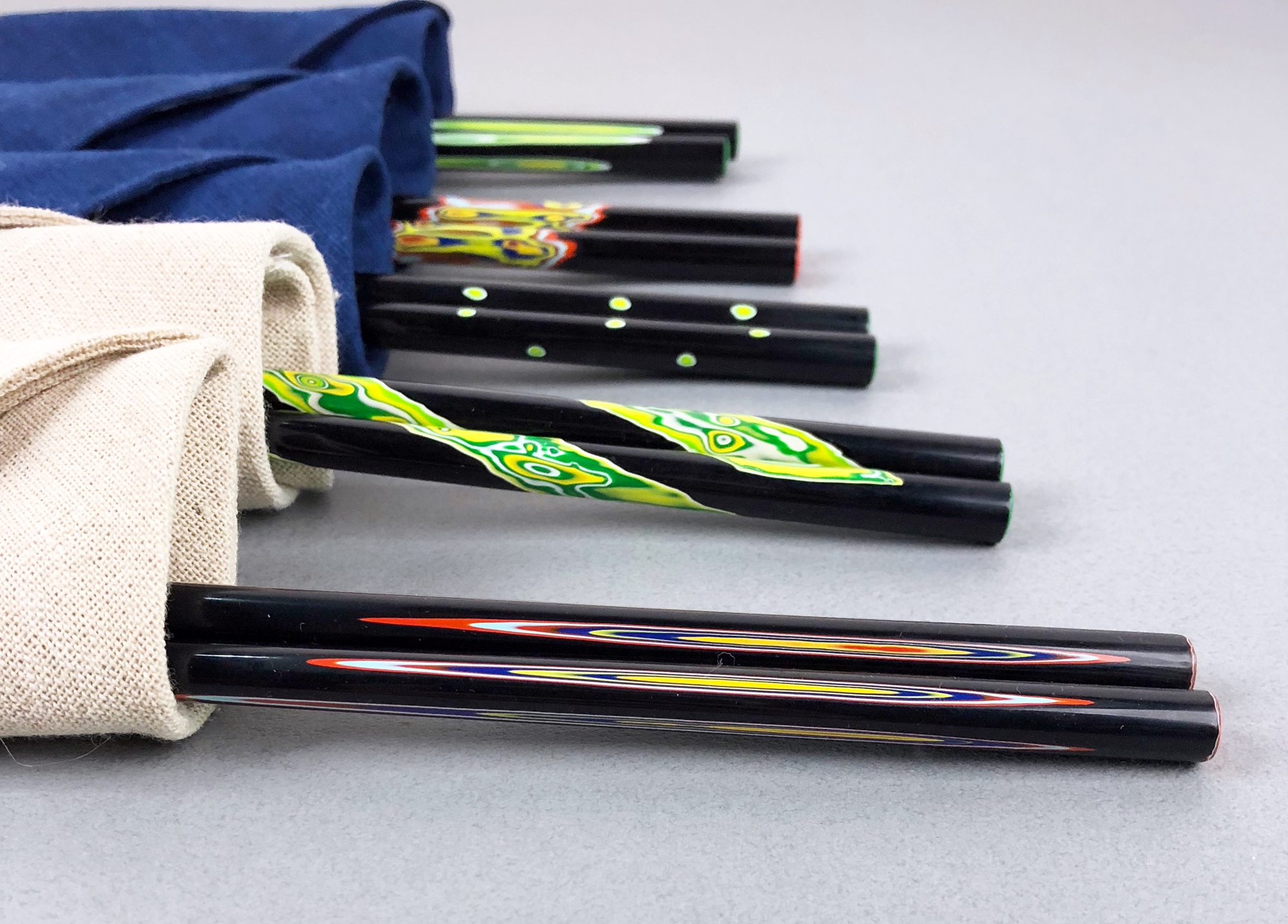 用水砂紙將藏在筷子表層下的顏色,一層層磨出繽紛的紋理、磨出漆器的傳統技藝、也磨出屬於你自己的美感藝術。