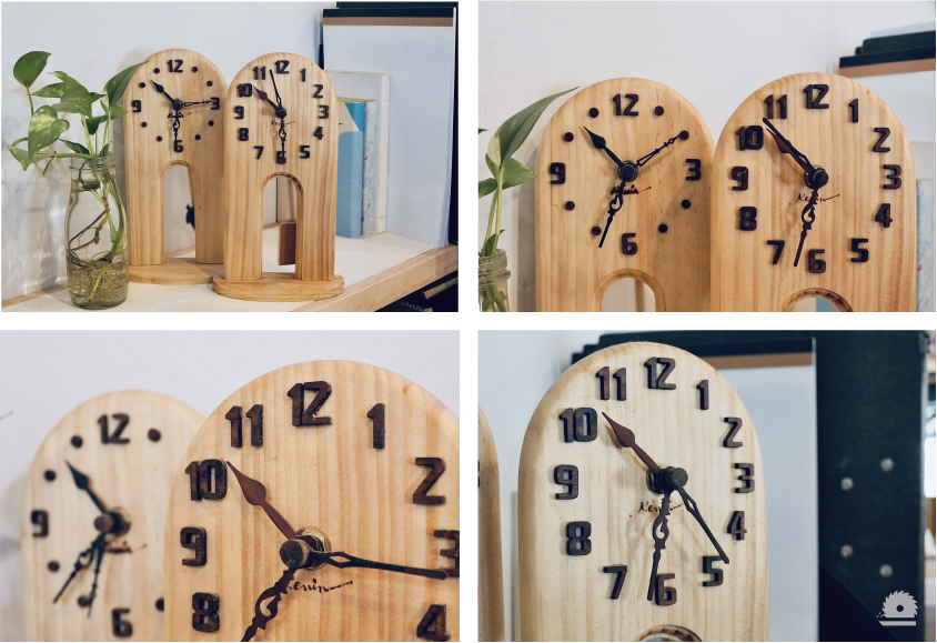 課程中跟著老師步驟進行,並搭配材料松木、雞翅木及太陽牌無聲機芯,學習指針機體組裝與鐘體底座製作。藉由基礎作品的習作,來了解木工機器的操作方式。一起在安全又舒適的自造環境,享受木工創作的樂趣吧!