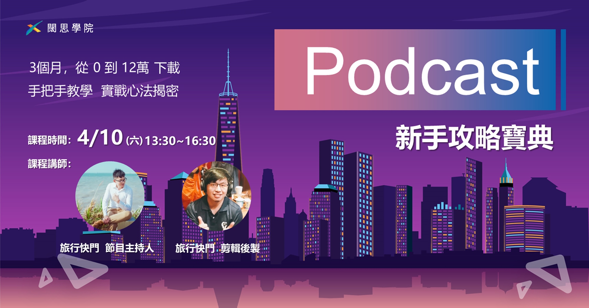 本次課程特別邀請:實戰派講師許庭棟、鄧偉宏老師,是Podcast節目【旅行快門】的主持、製作團隊,來和大家分享。