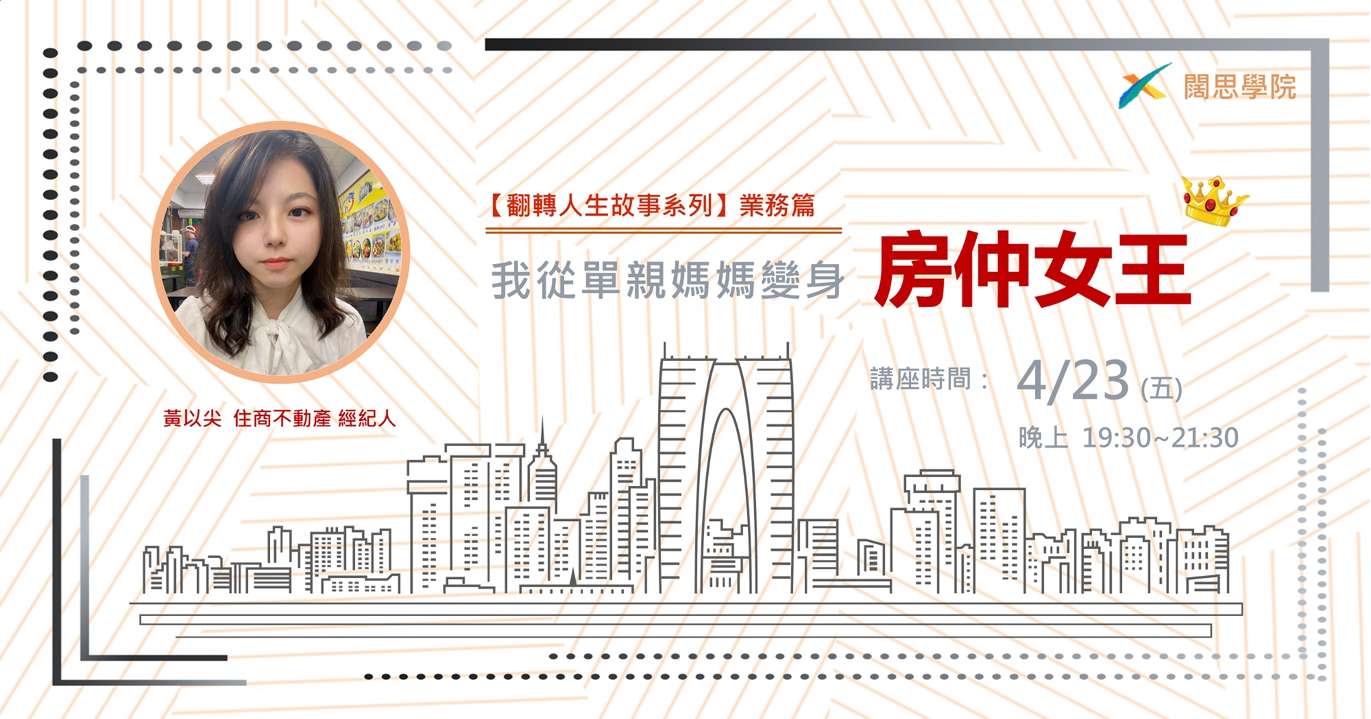 本次講座特別邀請《住商不動產》經紀人業務,黃以臻,和大家分享: