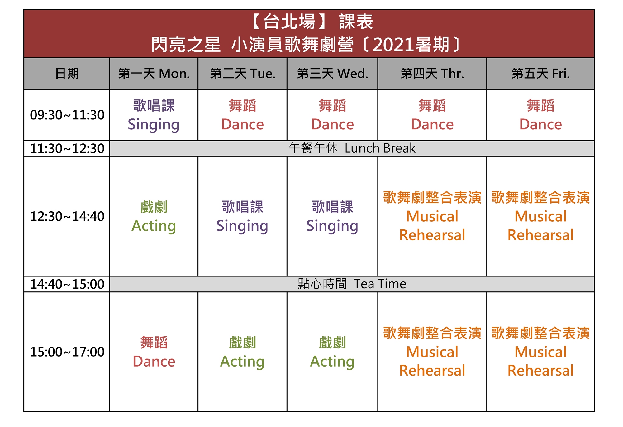 ◎ 課程費用:新台幣 $18,900元【費用含:教學師資 (含導師、助教5人) / 每日午餐及點心 / 上課材料 / 場地 / 彩排演出 / 演出設備 (不含演出服裝道具)】