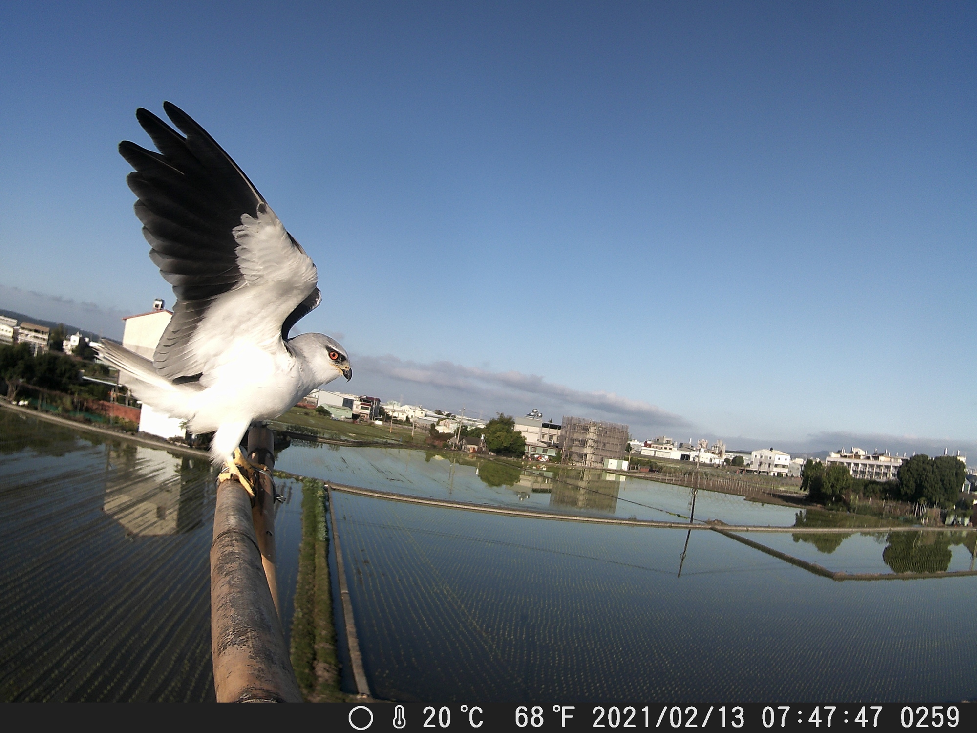 看~~帥氣的黑翅鳶來幫農民抓老鼠了!