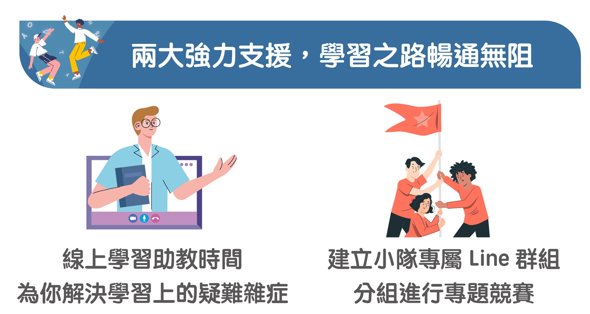 程式碼寫不出來嗎?我們提供了每周一次的線上助教時間,準備好你的問題與程式碼,助教將在線上會為你解題,確保你的學習不會受到問題阻礙。