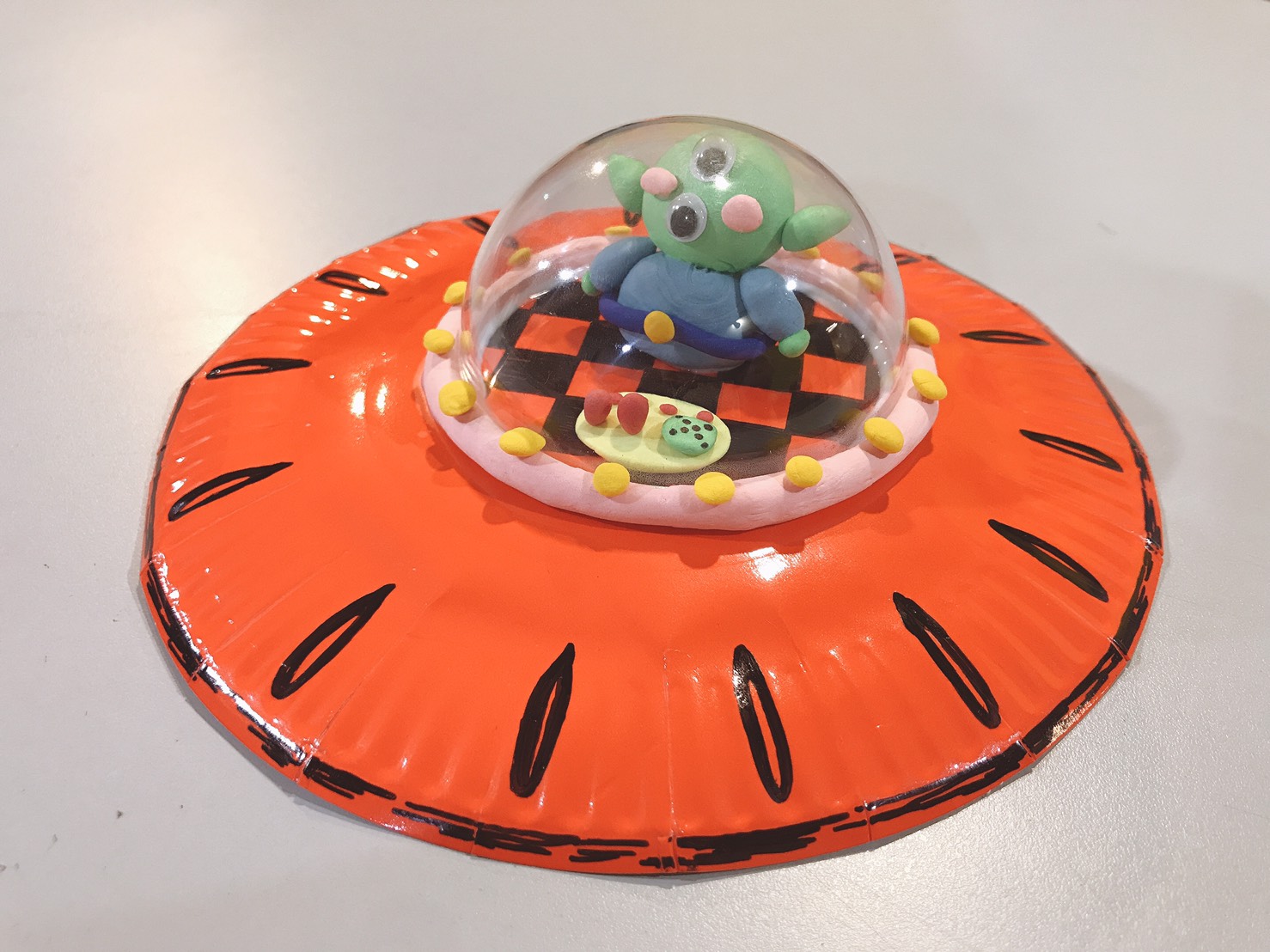 (作品包含由外星人駕駛的飛碟一架,如有多餘的黏土可自行製作其他物品)