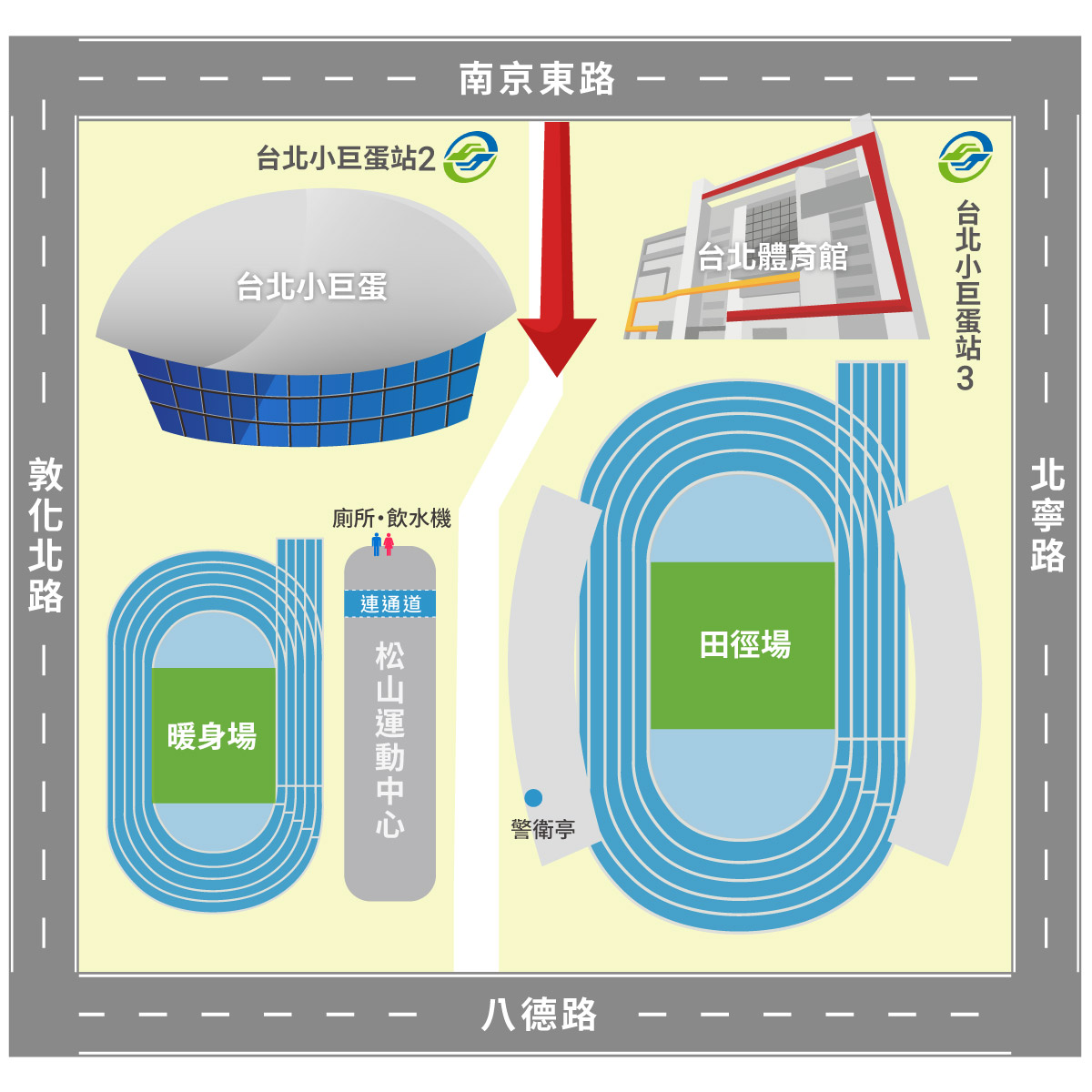 ※由捷運台北小巨蛋站三號出口進入臺北體育館