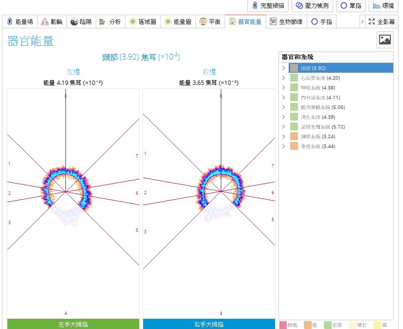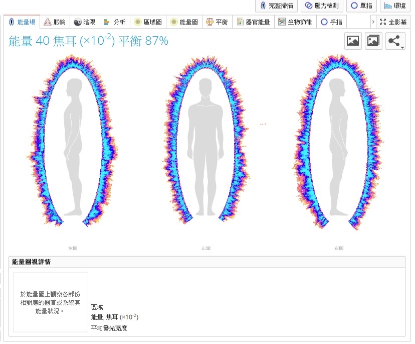 身體是一個電磁場,人體的細胞及所有的物質都帶有能量和相應的頻率,當我們的能量不足時,人體磁場的電力不夠,容易引起情緒低落,病毒入侵,身體健康狀況將受威脅,定期檢測自身能量,得知體內器官能量情形,提早做調理並且搭配飲食,可使體內能量恢復平衡,氣場十足!
