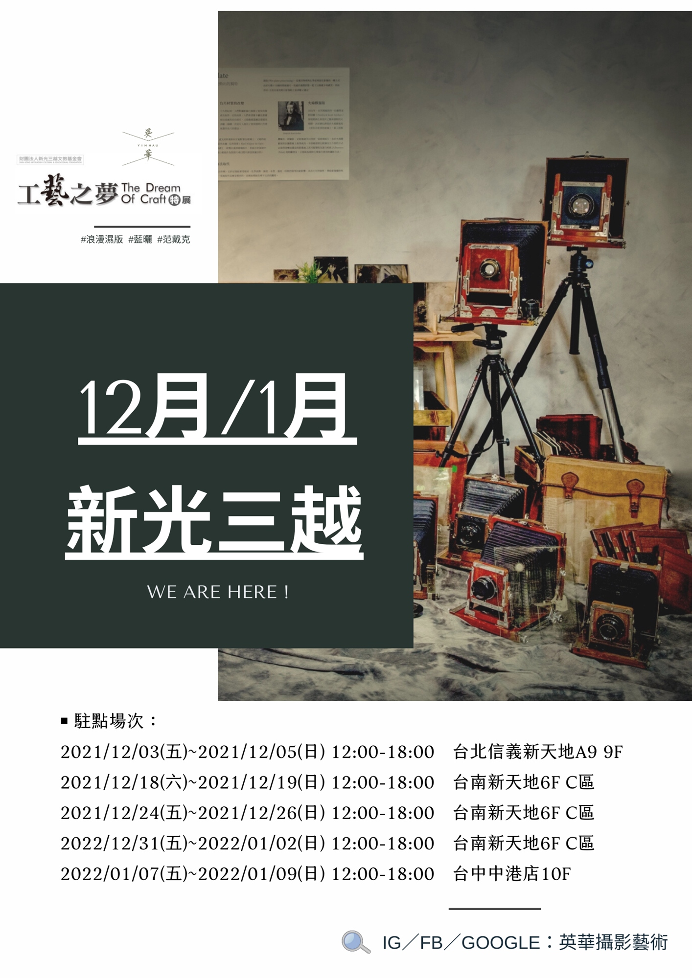 · 為現場活動體驗,請準備2張照片上傳,回傳給主辦單位 FB/IG:英華攝影藝術工作室 ,最晚前3天需給予或使用現場範本進行體驗。。