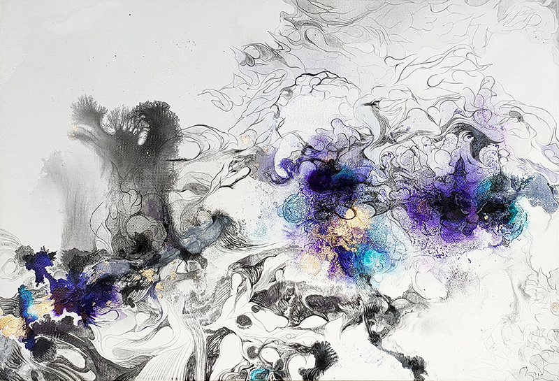 Alcohol ink ,acrylic on canvas 41x60 cm 2021