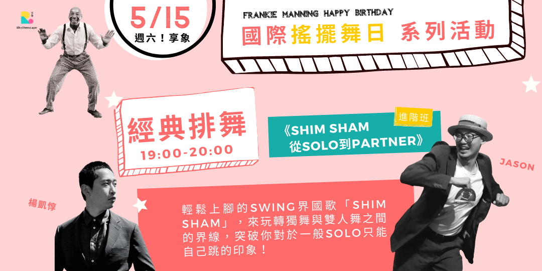 - 【5/15 講座 + 5/16 Shim Sham 入門體驗】NT$ 750/人(原價 NT$ 850)