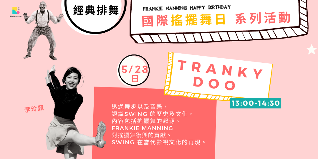 | 【經典排舞】 13:00-14:30 如期舉行 | 《Tranky Doo 入門體驗》 搖擺經典舞步 | 李玲甄 |