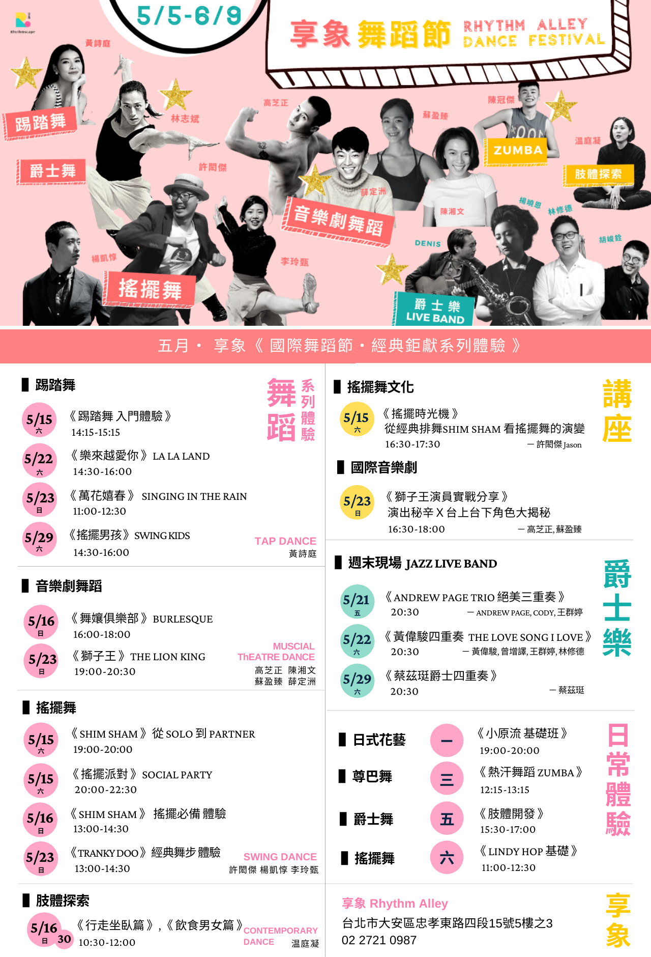「享象Rhythm Alley」為亞洲新興的 表演藝術活動公司,以音樂、舞蹈為品牌核心。