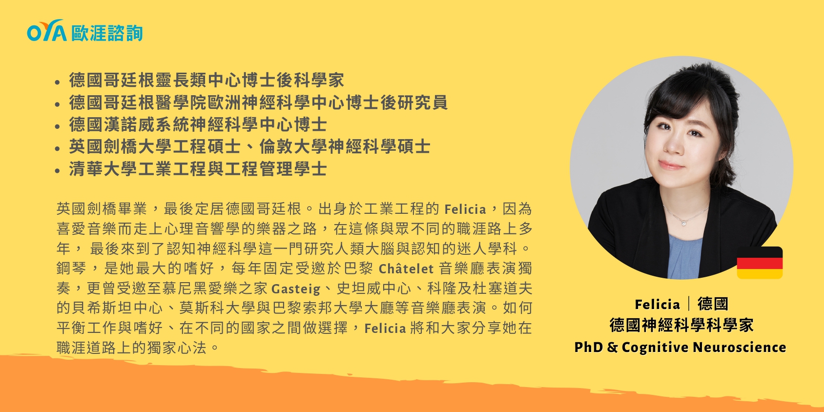 在這場講座裡,你將聽到她們曾經繞過的遠路、聽到她們分享如何征服數個在歐洲茫然的夜晚,你將會發現,她們並非一帆風順,只是掌握職涯大海的羅盤,累著卻快樂著,享受在歐洲發展職涯的人生!
