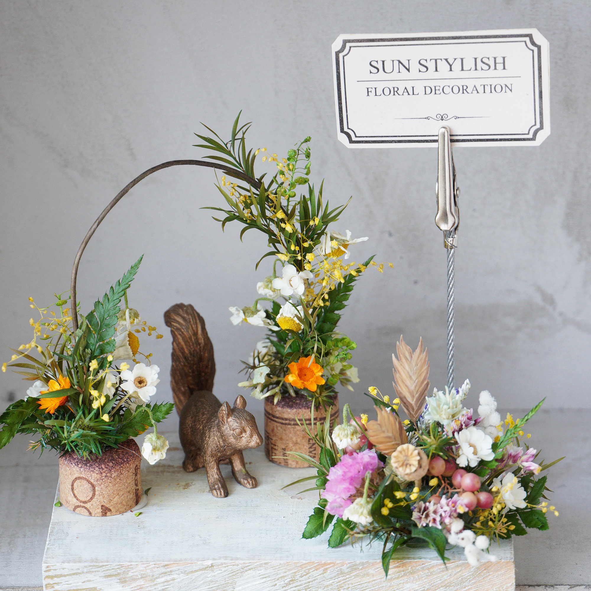 「SUN 風格花物」 以迷你的手作花藝作品為主,期望透過「花」與「迷你」這兩樣療癒要素結合的作品,為現今生活忙碌的人們帶來放鬆的氛圍。
