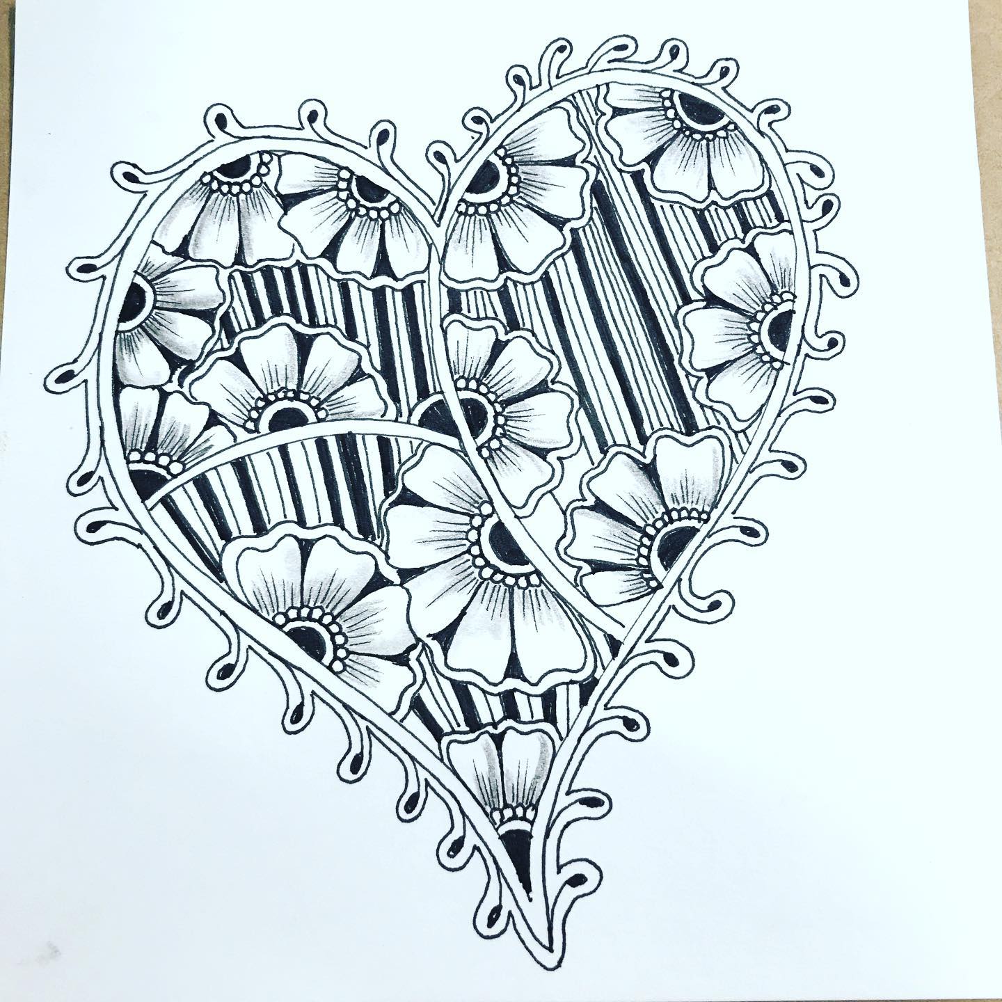禪繞自己的愛心圖形作品,