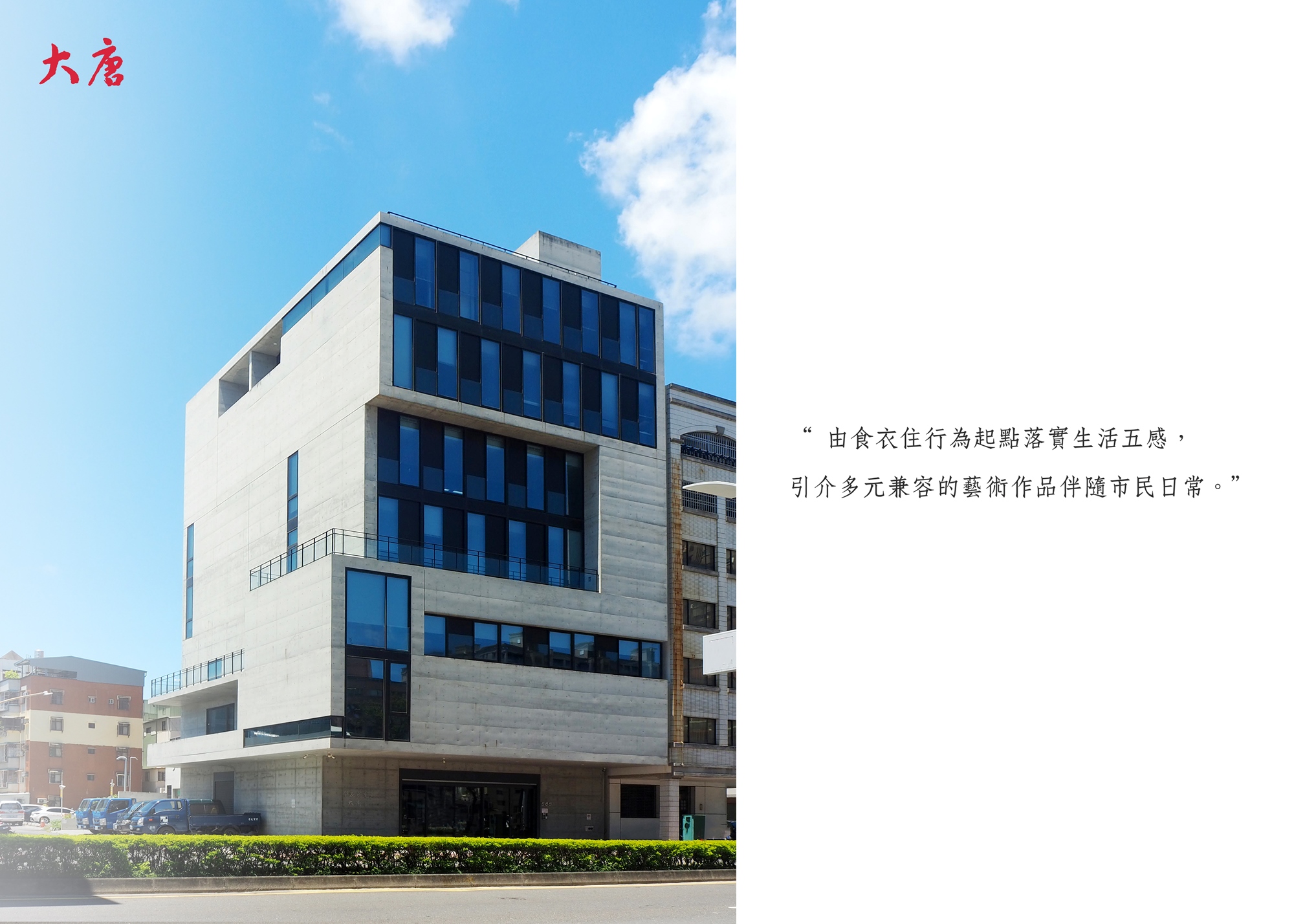 大唐生活美學館致力邀請國內外藝術家,藉由食衣住行為起點落實生活五感,以多元兼容的藝術作品及系列講座,共同為高雄的人文藝術生活及教育深耕,讓藝術伴隨市民日常。