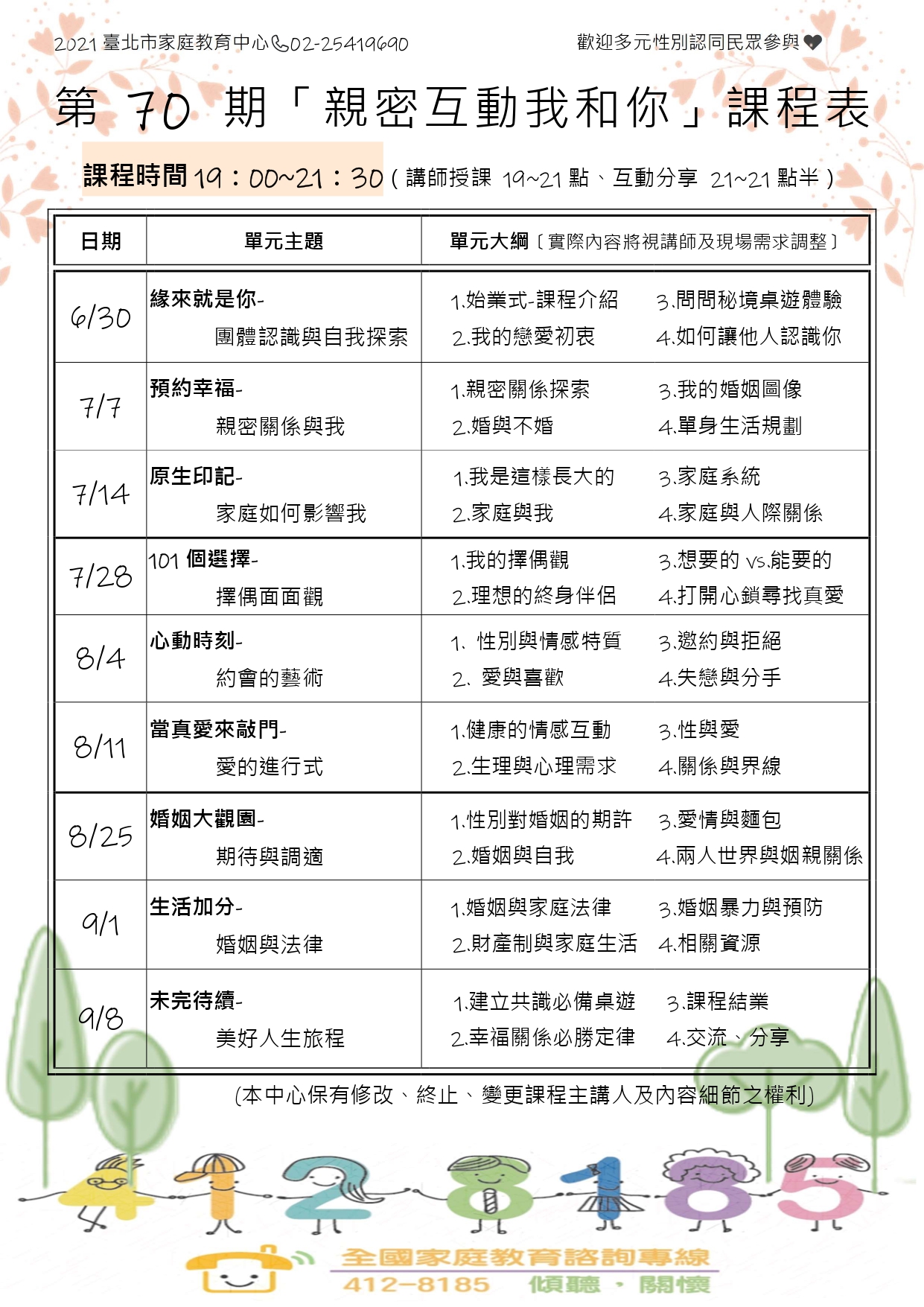 臺北市家庭教育中心-第70期【親密互動我和你】系列課程