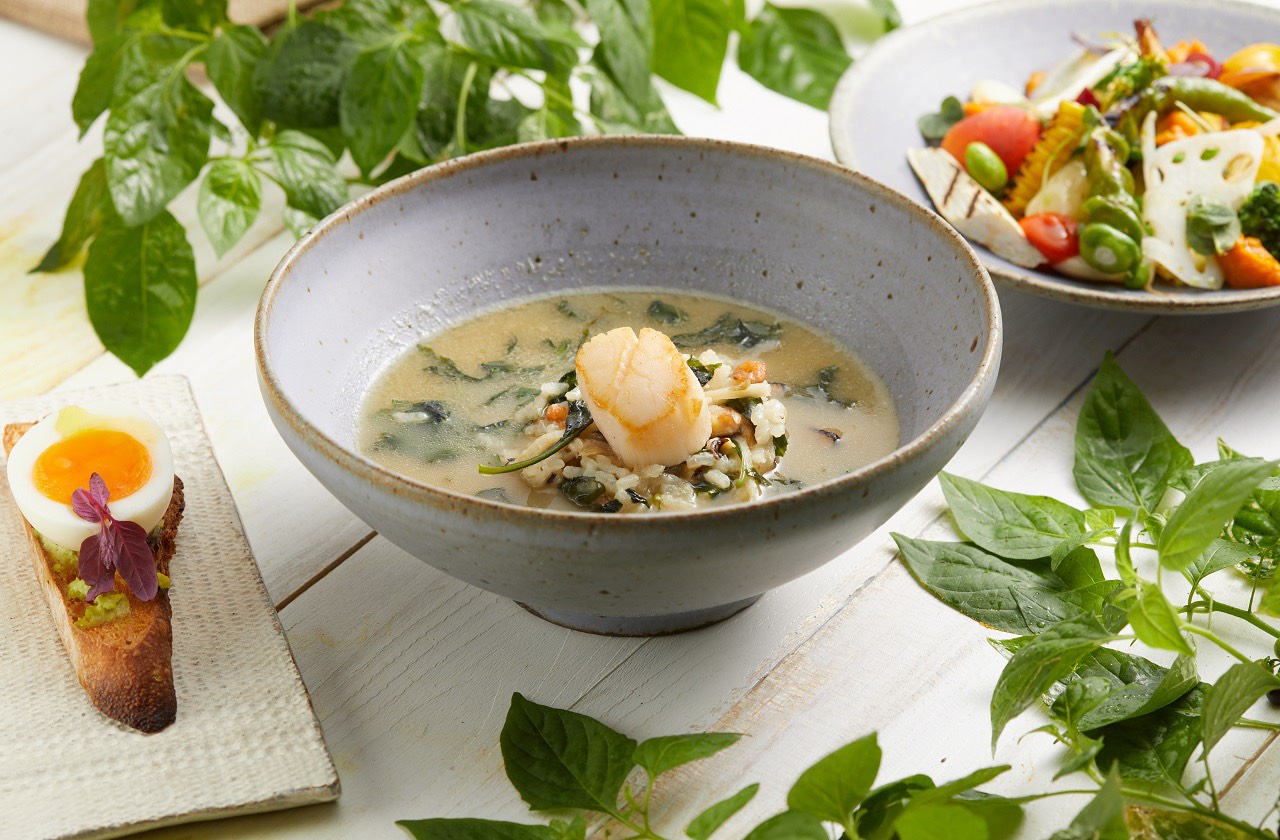 上山下海,腳踩大地,找尋最富生命力的食材,匯集與大地連結的各種美好。特別邀請台法料理名廚簡天才主廚、食材文化研究家徐仲老師攜手打造在地食饌「湯料理」套餐,藉由降低澱粉與提高優質的蛋白質,把台南的牛肉湯文化,南部常見烏甜仔菜的鄉愁,四面環海的海鮮特色等,用法式料理手法,一一呈現上桌。