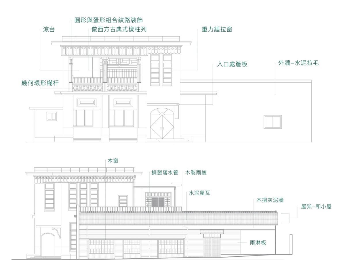 (上圖)紀念建築-宮原武熊宅邸 建築立面圖
