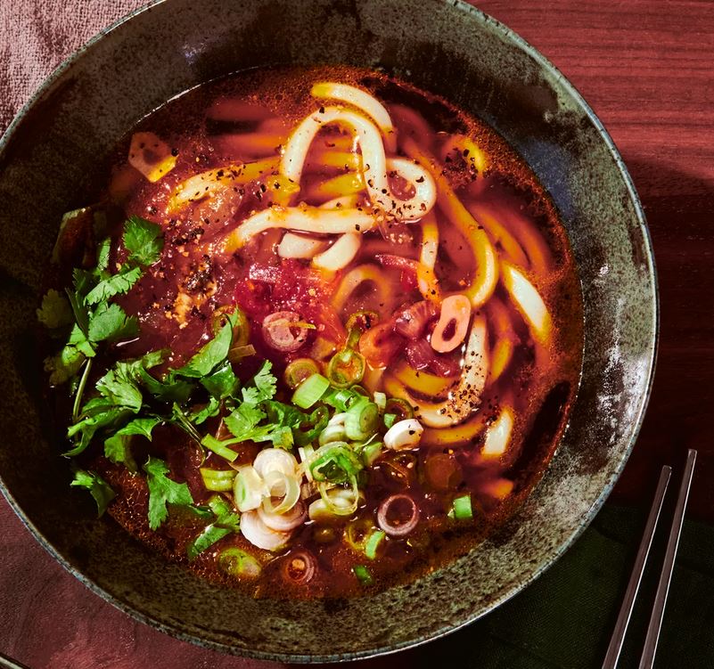 2.蔥花拌咖哩番茄烏龍麵:洋蔥、牛番茄、蔥、烏龍麵