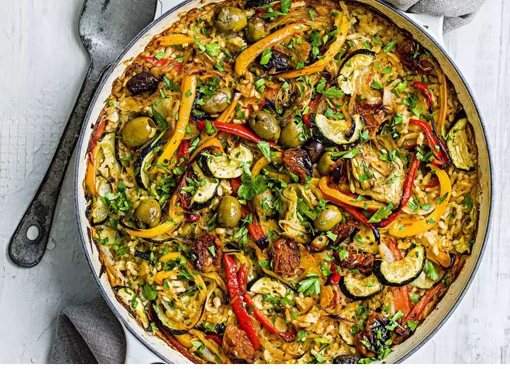 1. 蔬食西班牙海鮮飯(無葷):洋蔥、櫛瓜、四季豆、芹菜、甜椒、蒜頭、熟橄欖