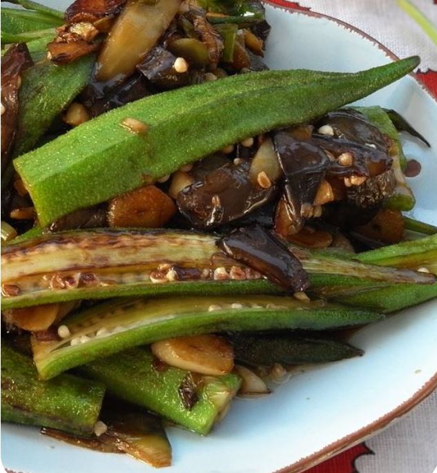 5.蒜味秋葵拌茄子:秋葵、茄子、蒜頭