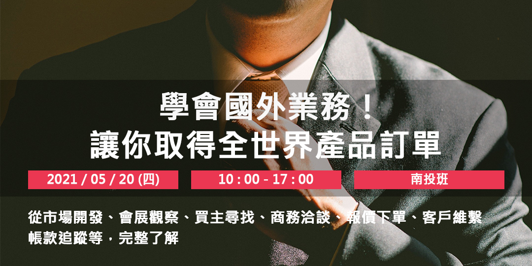 喜歡挑戰、與人交談、享受征服感的你想在國外業務闖出一片天嗎?當國外業務一定要善於溝通、聊天、交陪嗎?這堂課程讓你了解老闆與主管怎麼看待國外業務人員職位,從市場開發、會展觀察、買主尋找、商務洽談、報價下單、客戶維繫、帳款追蹤等,完整了解國外業務人員工作內容與技巧,從菜鳥業務員成為超級業務員。