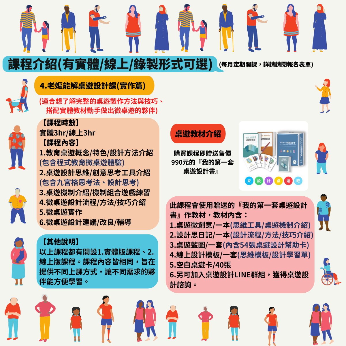 (3)【想單獨了解遊戲學習設計/桌遊理論/桌遊實務/桌遊故事設計】 也可單獨報名編號1至4的課程。